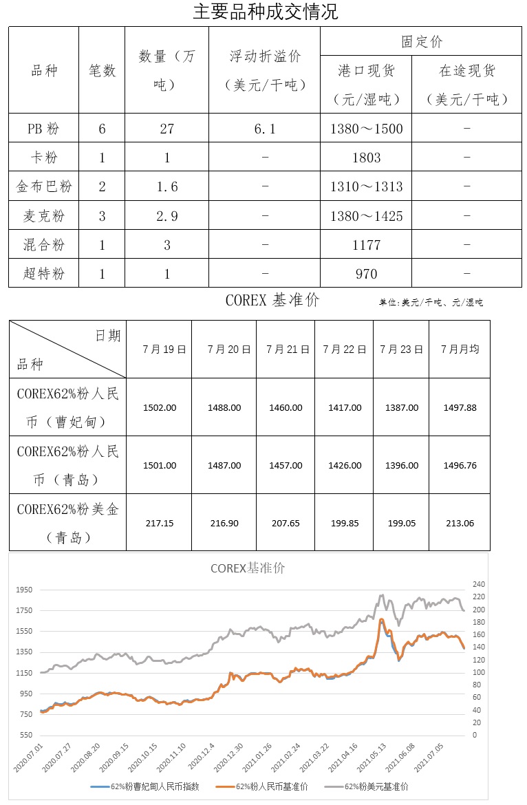 7月19日-7月23日成交22筆共43.2萬噸,其中在途1筆17萬噸,港口21筆26.2萬噸。