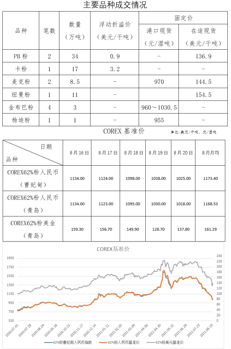 8月16日-8月20日成交12筆共75.5萬噸,其中在途5筆70萬噸,港口7筆5.5萬