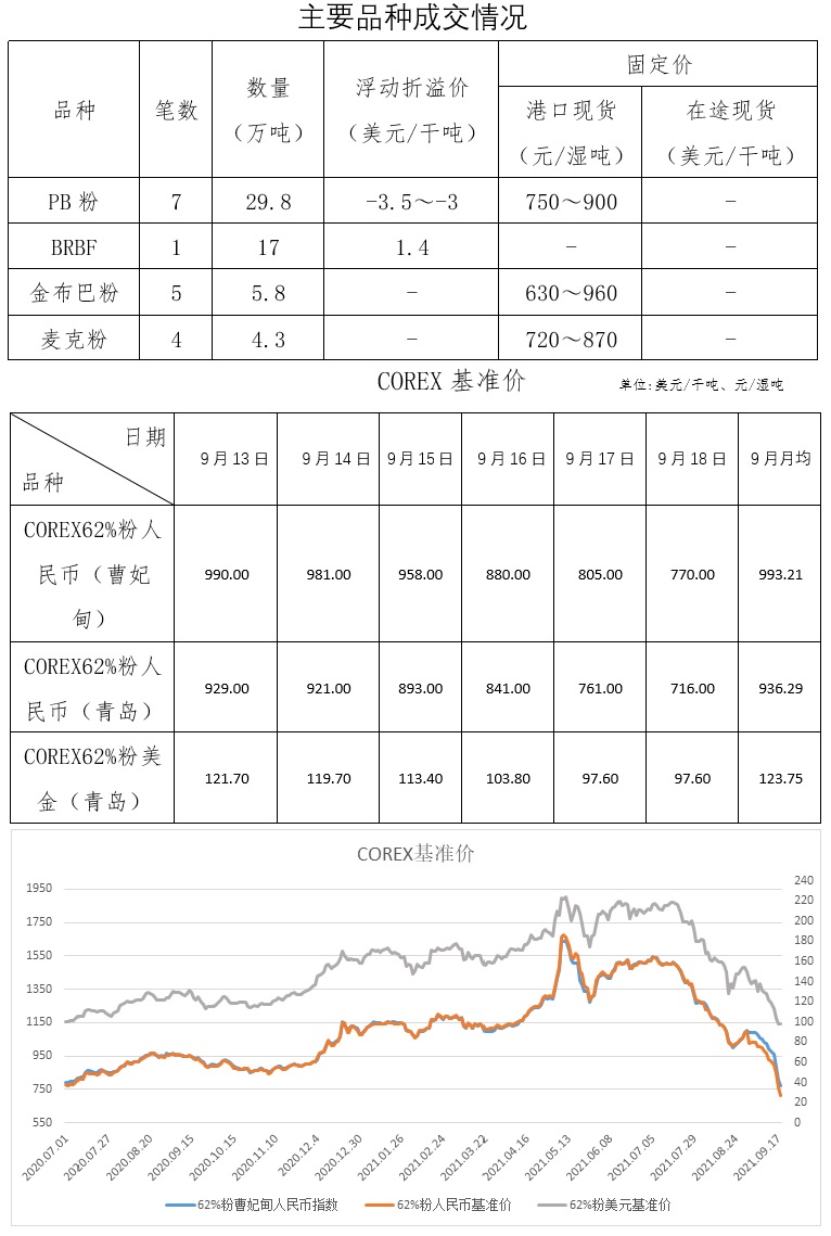 9月13日-9月18日成交22筆共75.68萬噸,其中在途3筆51萬噸,港口19筆24.68萬噸。