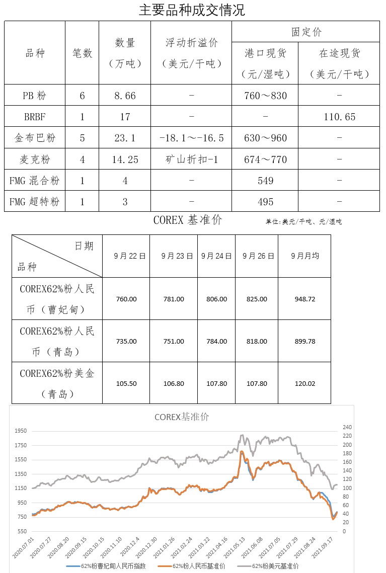 9月22日-9月26日成交27筆共88.11萬噸,其中在途5筆56.6萬噸,港口22筆31.51萬噸。