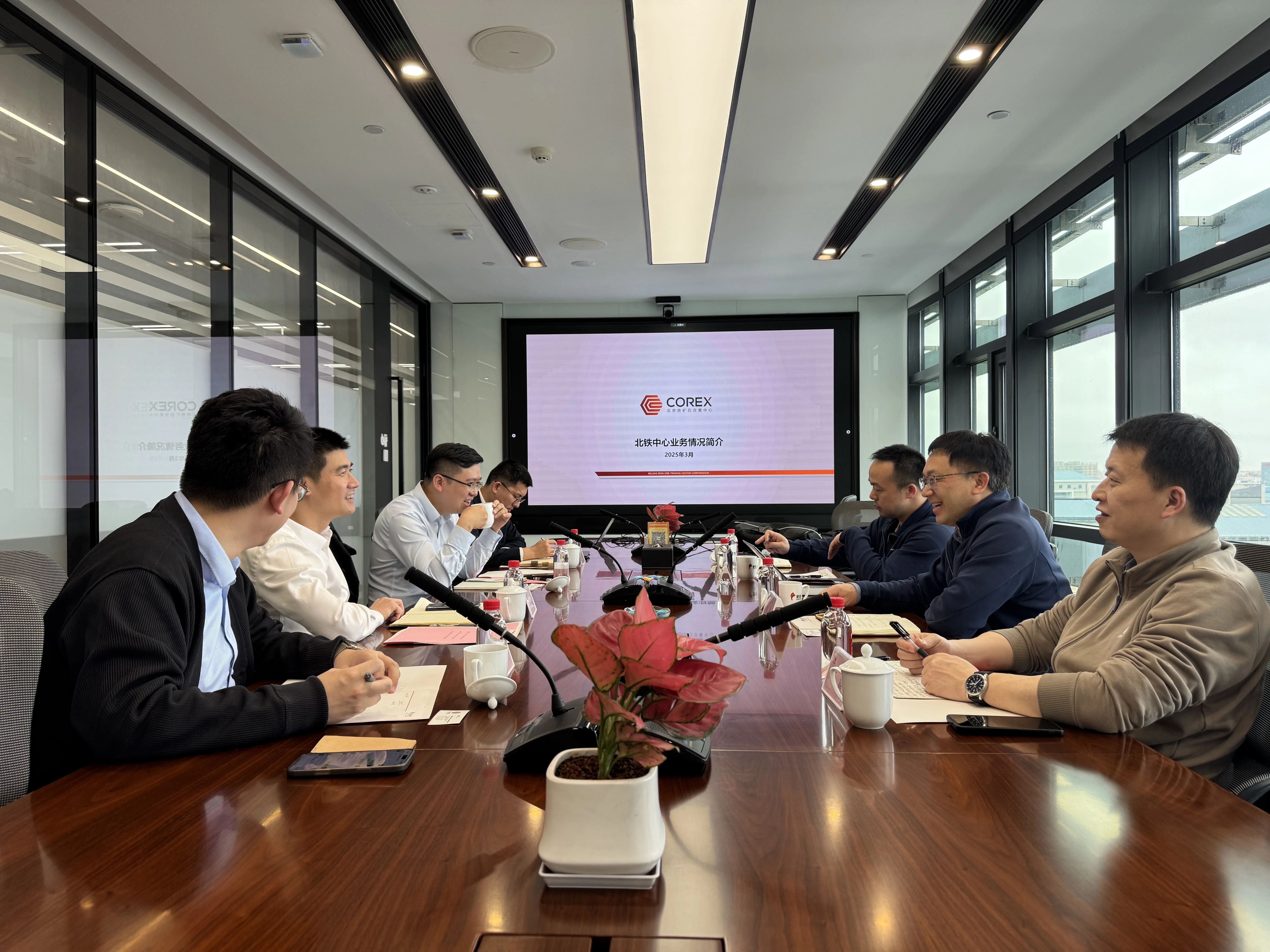 游松總裁介紹了2024年中國鐵礦石現(xiàn)貨交易平臺運(yùn)行情況,并與國貿(mào)股份、嶼豐礦產(chǎn)就鐵礦石市場現(xiàn)狀及發(fā)展趨勢、基差交易、市場拓展、平臺服務(wù)等問題進(jìn)行了深度討論。雙方均認(rèn)為,要共同加強(qiáng)客戶服務(wù),助力行業(yè)良性發(fā)展,進(jìn)一步深化合作,豐富平臺使用場景,提升交易參與度,充分發(fā)揮平臺功能和價(jià)值。